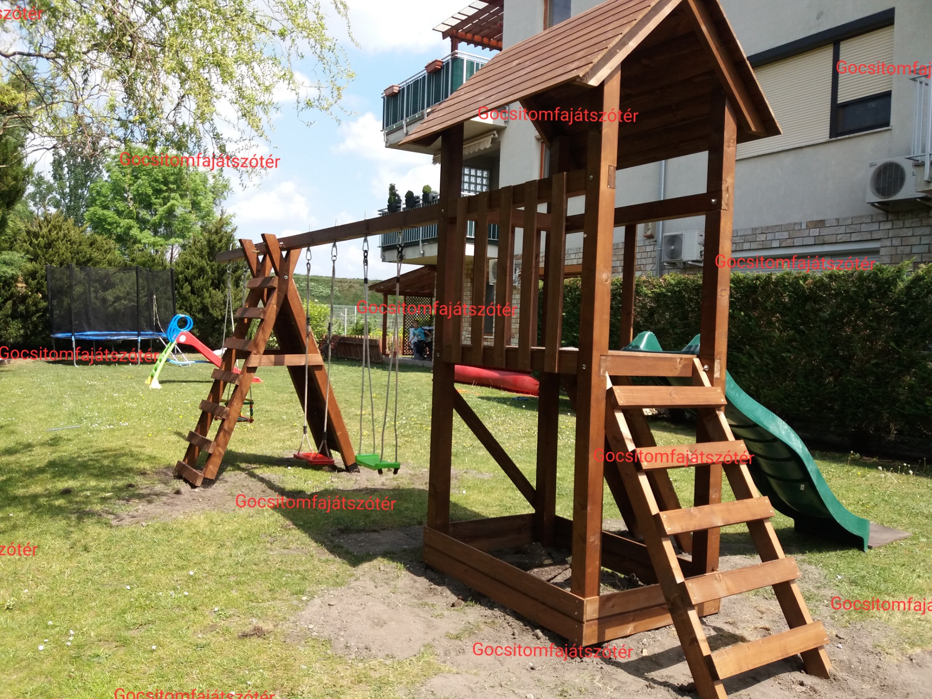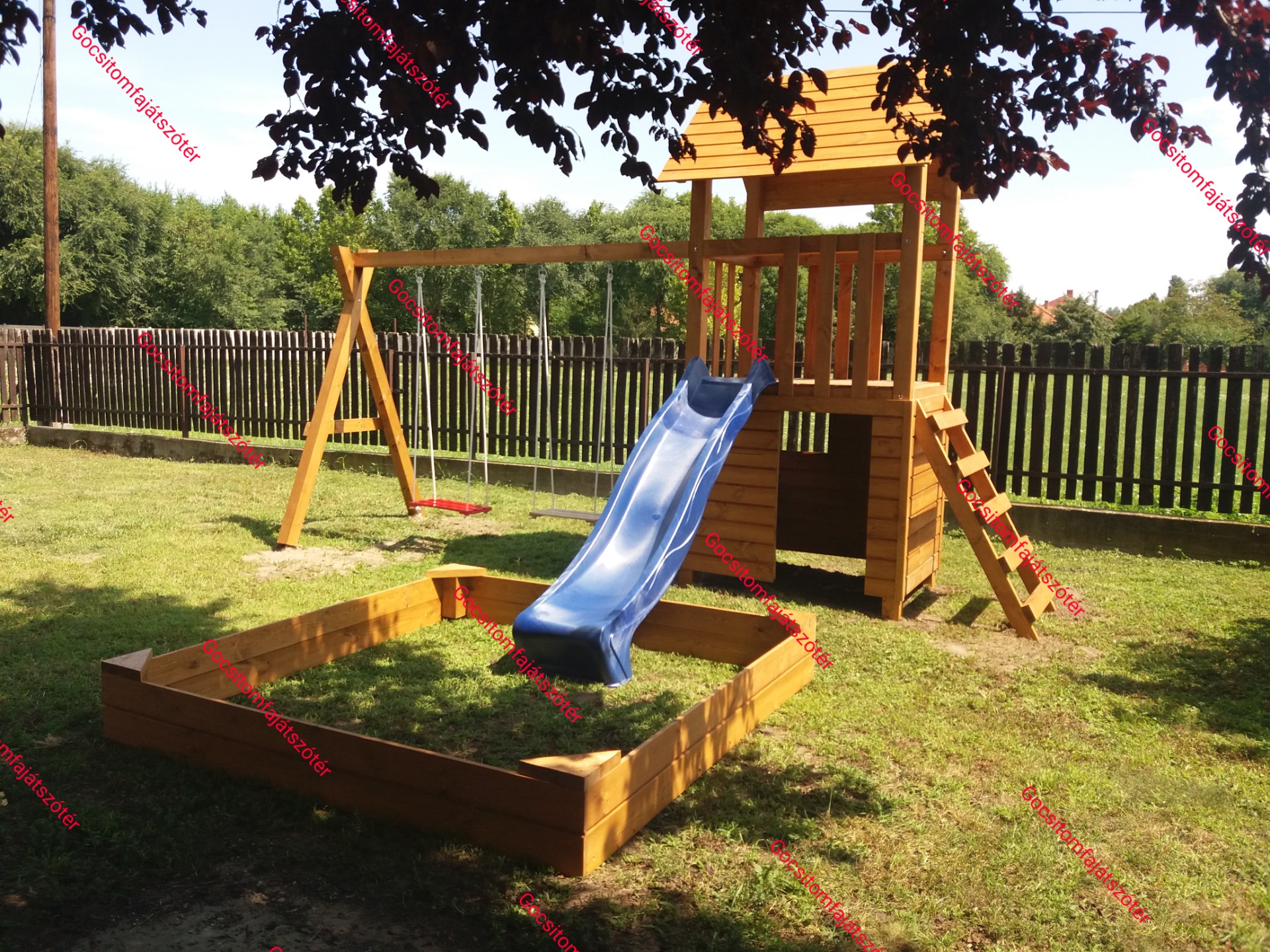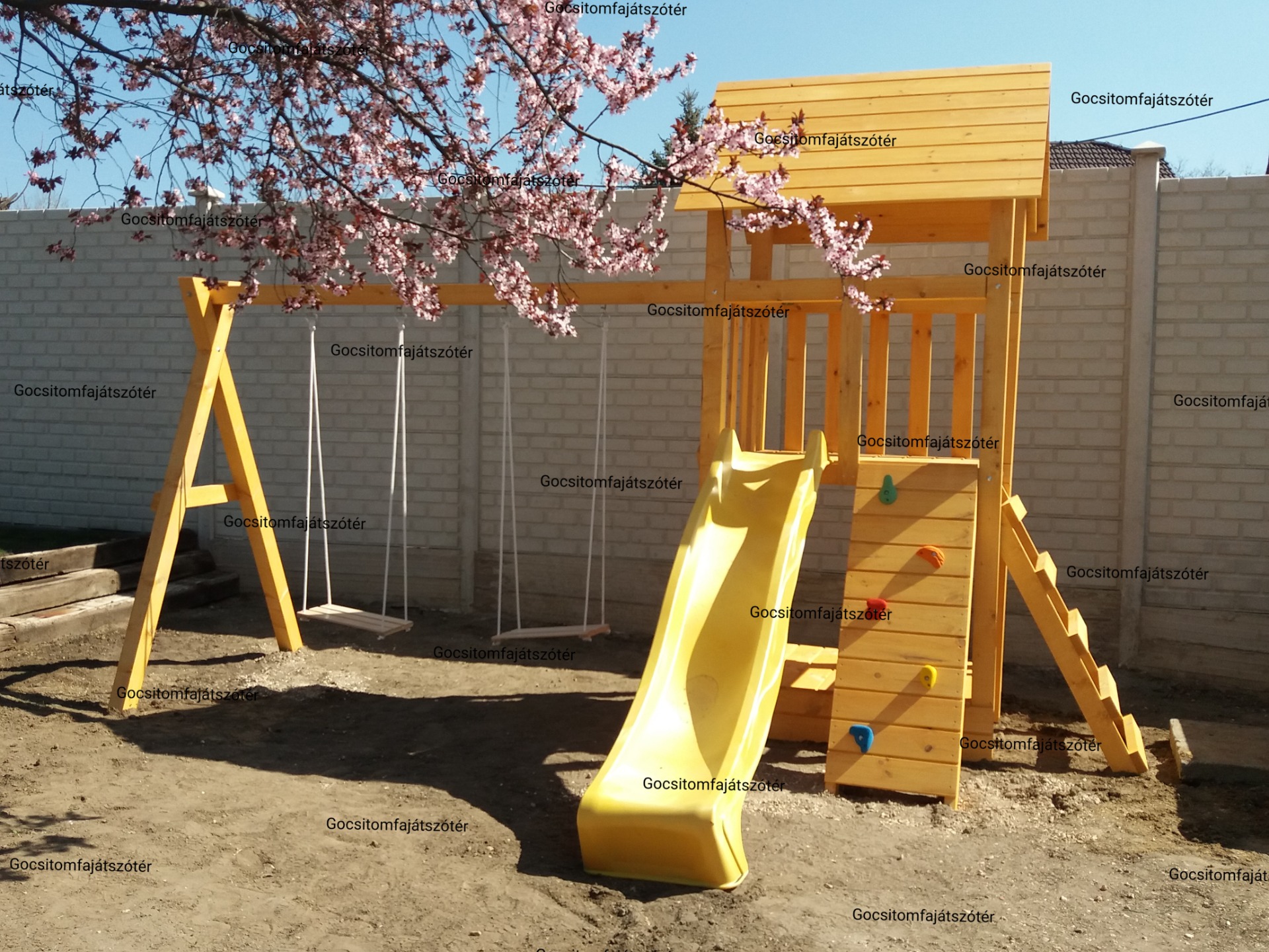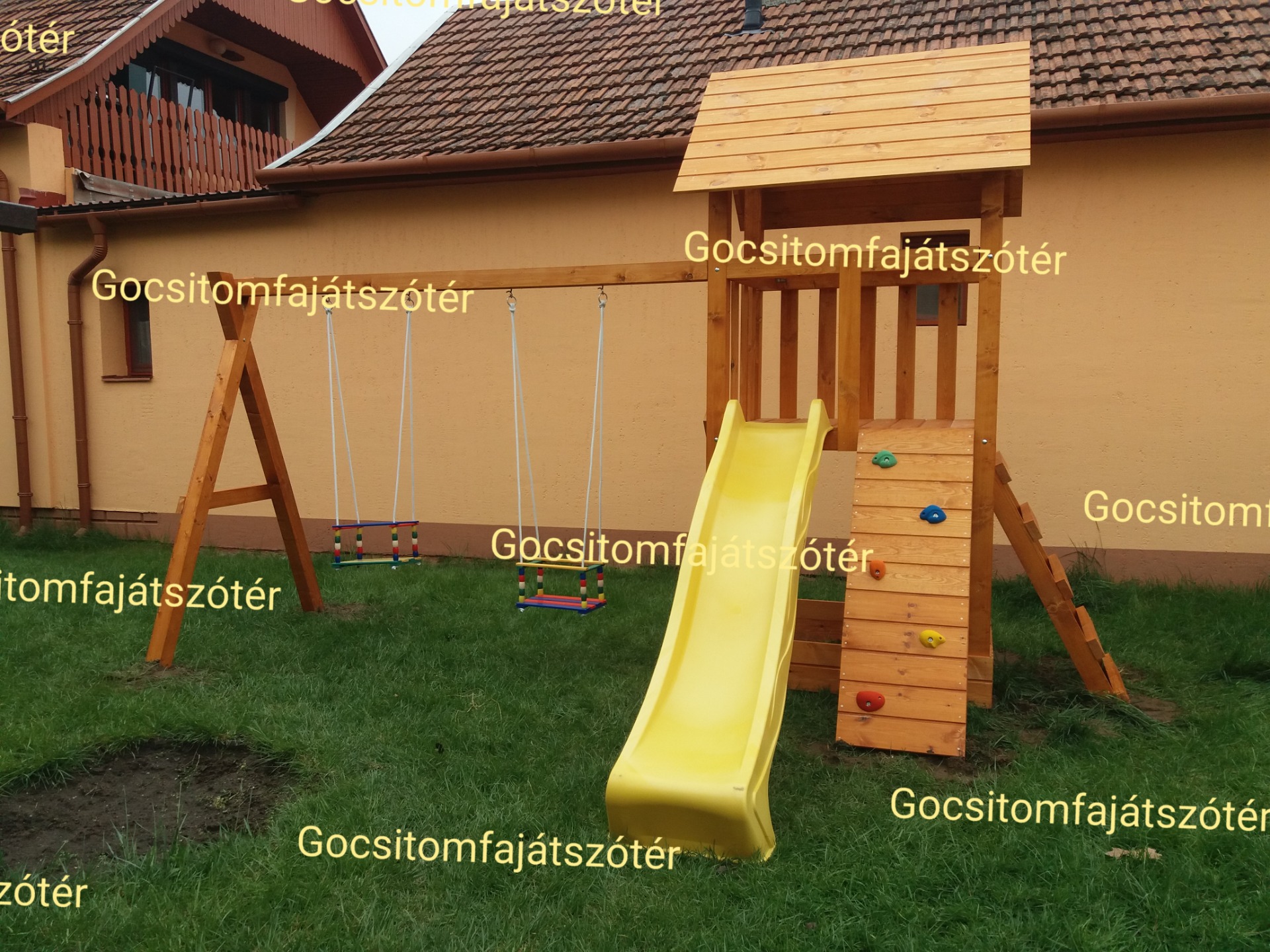 + nagy mászófalat (0,9m x 1,6m) 10 fogással, túloldalán létrával.