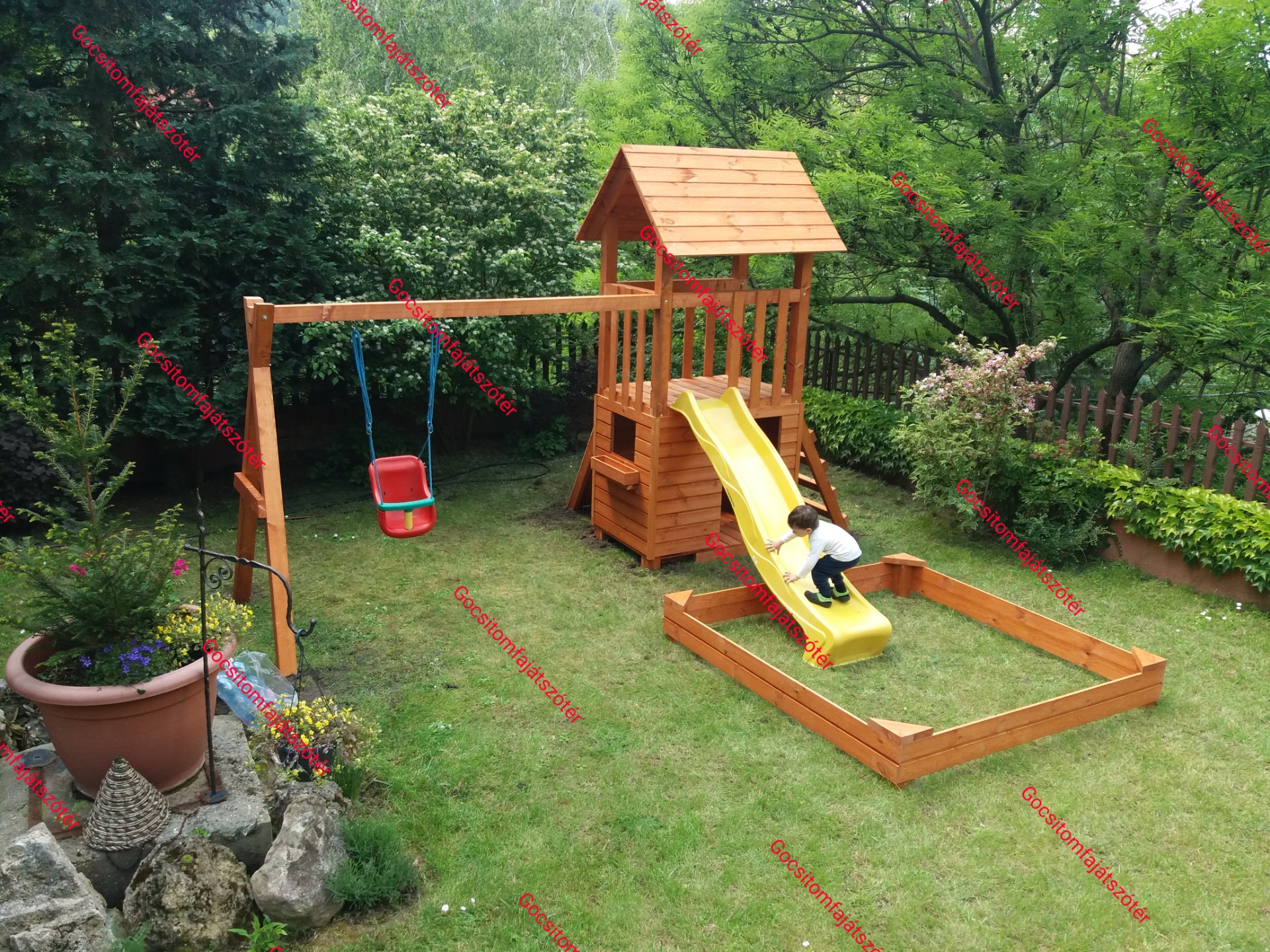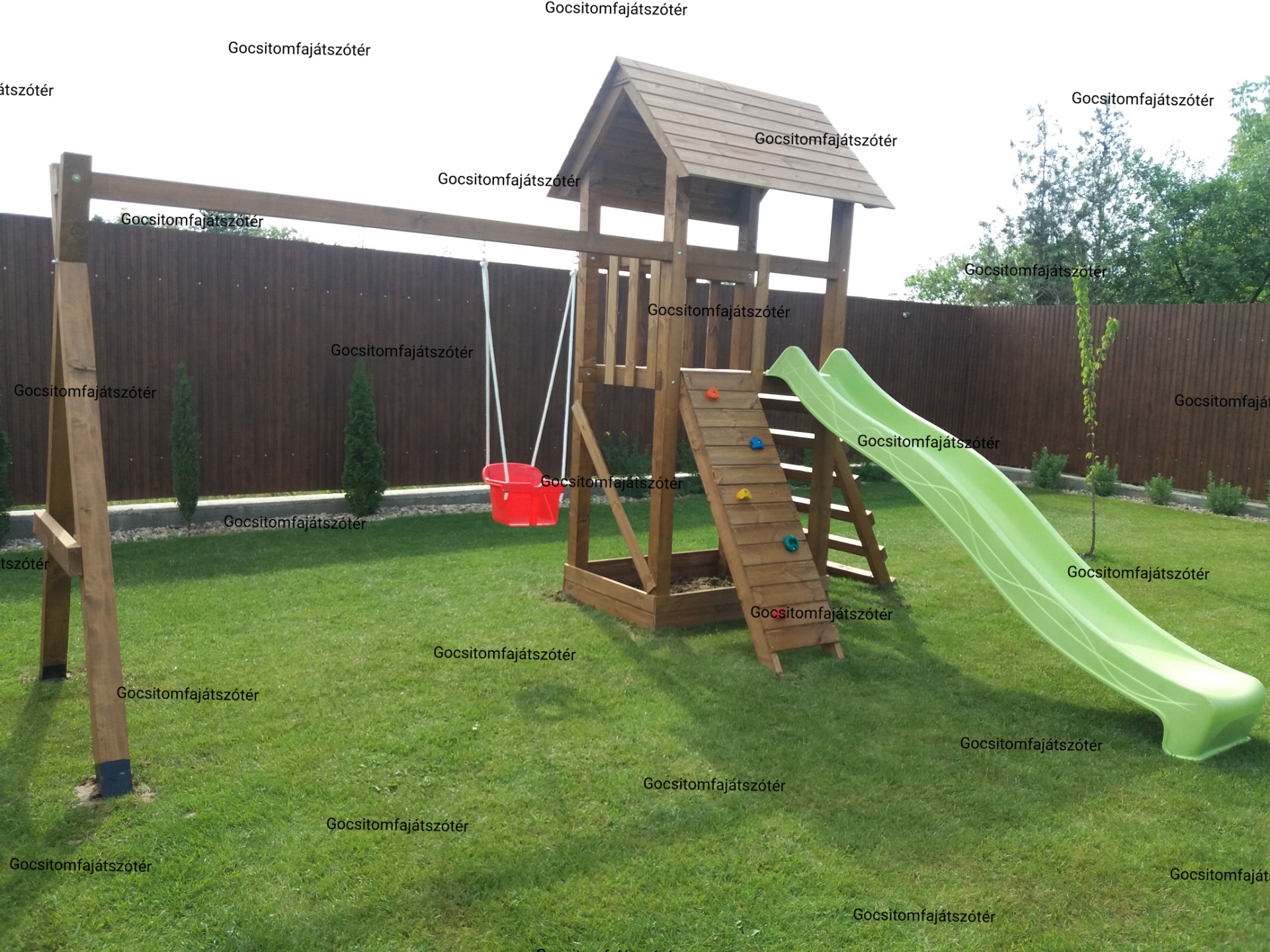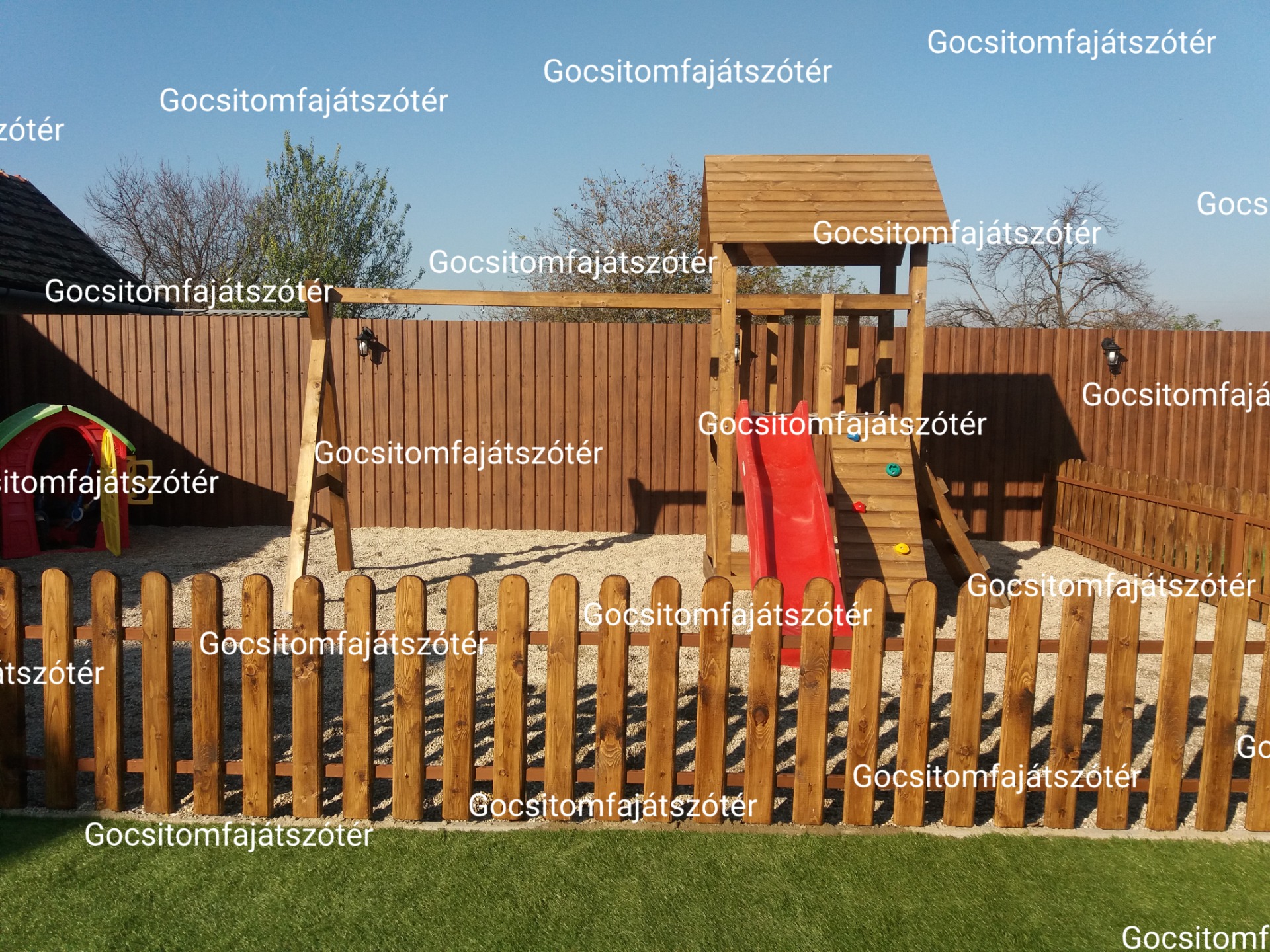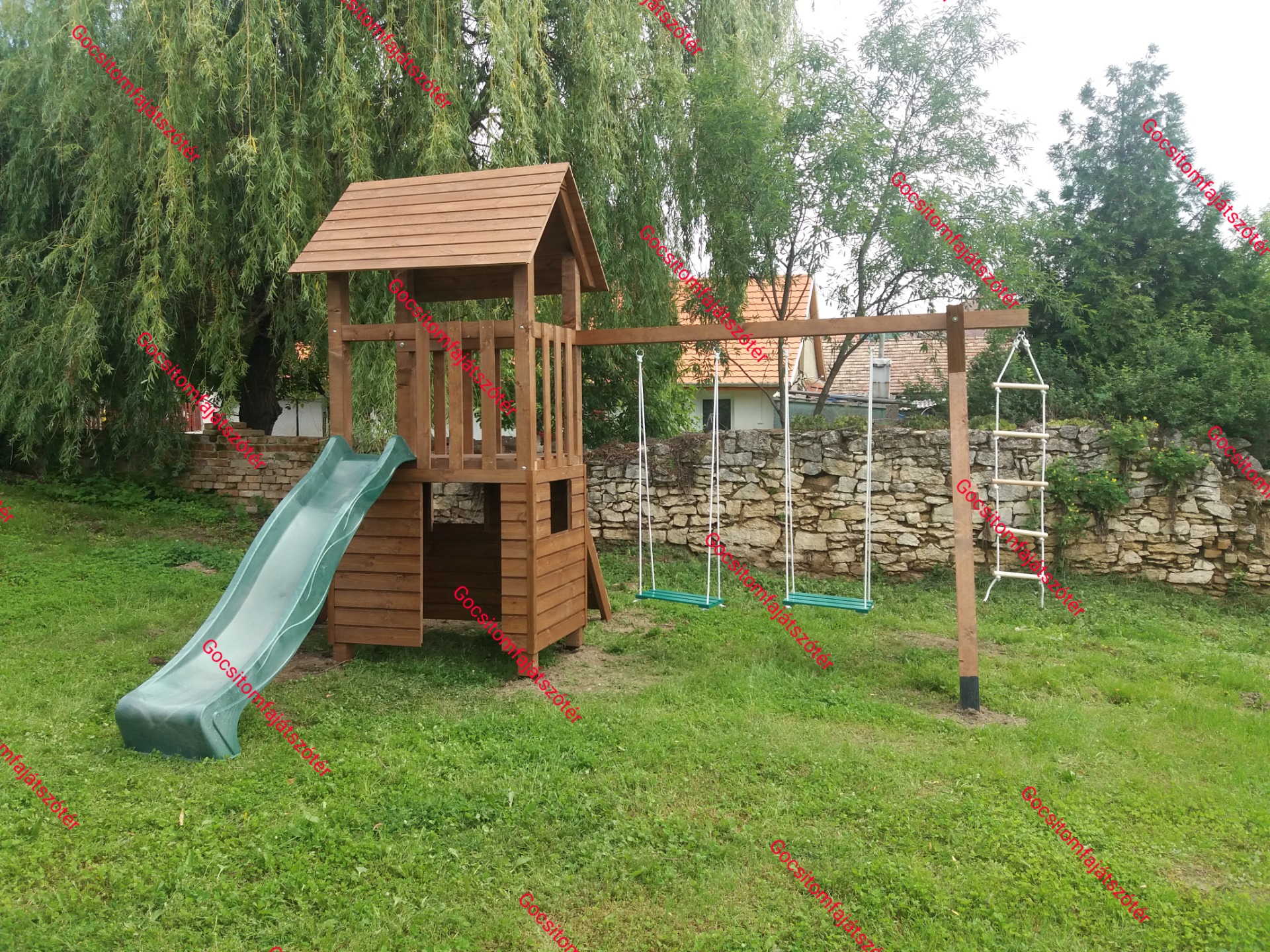 + nagy mászófalat (0,9m x 1,6m) 10 fogással, túloldalán létrával.